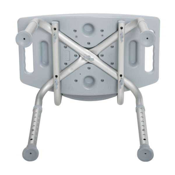 Easy, tool-free assembly of back seat and legs (Figure A – B) Aluminum frame is lightweight, durable and corrosion proof Legs are height adjustable in 1″ increments, and angled with slip reduction tips to provide additional stability Made using recycled materials.
