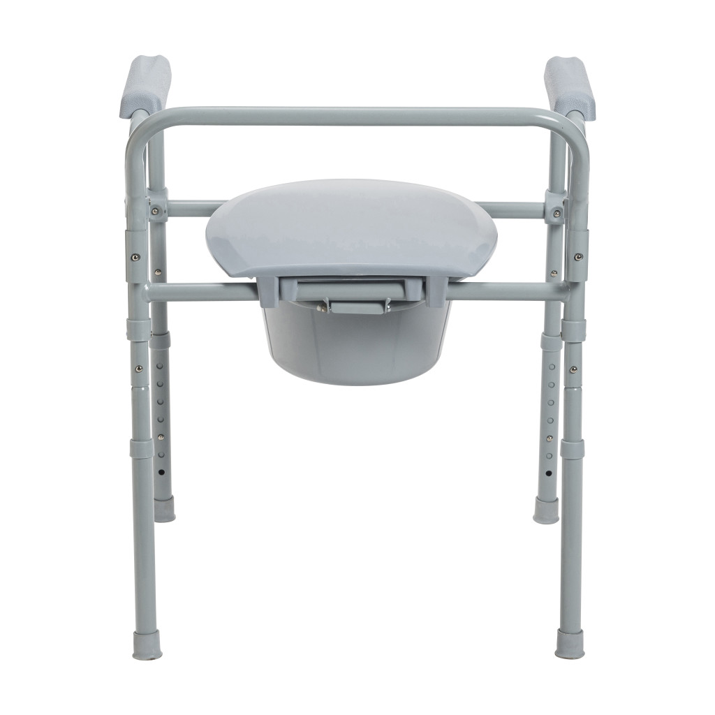 Easy, tool-free assembly Easily opens and folds for storage and transportation Durable plastic snap-on seat and lid Powder-coated steel-welded construction Plastic arms for added comfort.