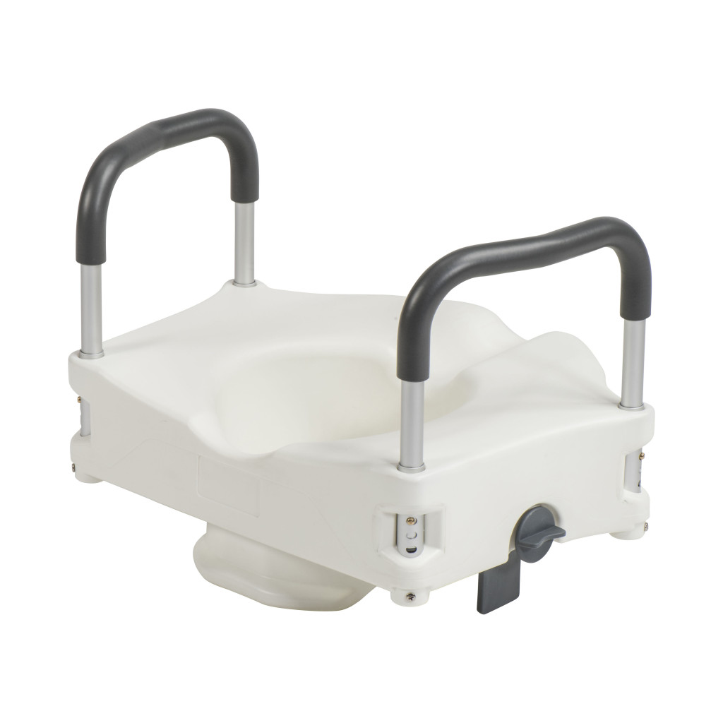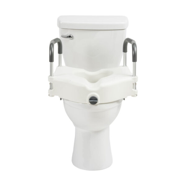 The new PreserveTech™ Secure Lock Raised Toilet Seat features three locking points on the front and sides for added security and stability. This toilet seat adds an extra 5” of height to the toilet and includes padded armrests that can be adjusted or removed. Most non-permanent raised toilet seats only offer one or two locking points of security resulting in.